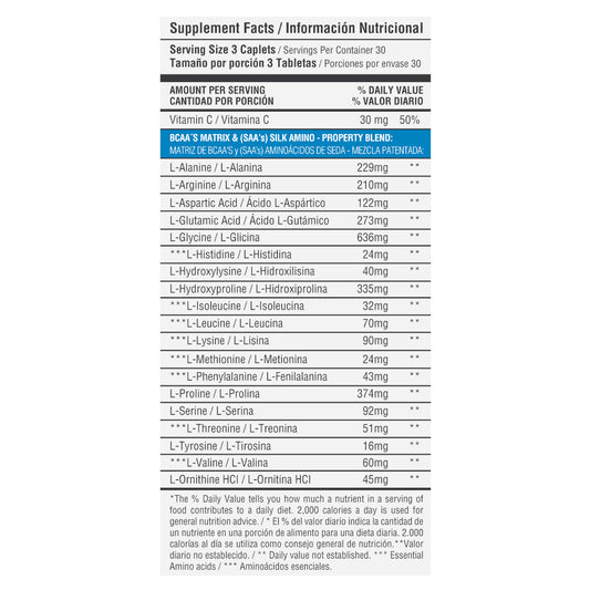 BCAA y Silk Amino -3000mg - 90 Capsulas - Healthy Sports