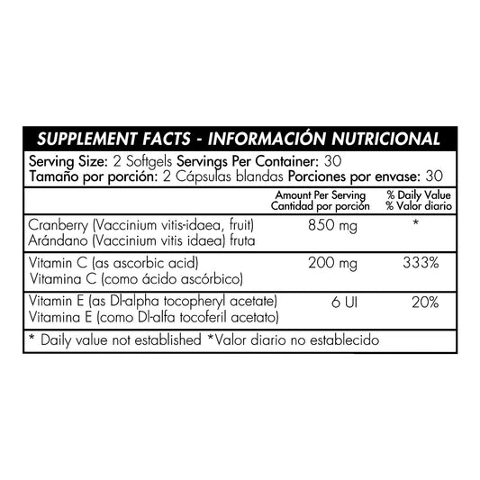 Mega Cranberry - 850mg - Con vitamina C&E - 60 Cápsulas - Healthy America