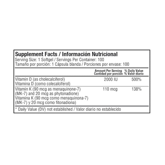 Duovit (Vitamina D3+K2) - 100 Cápsulas - Healthy America