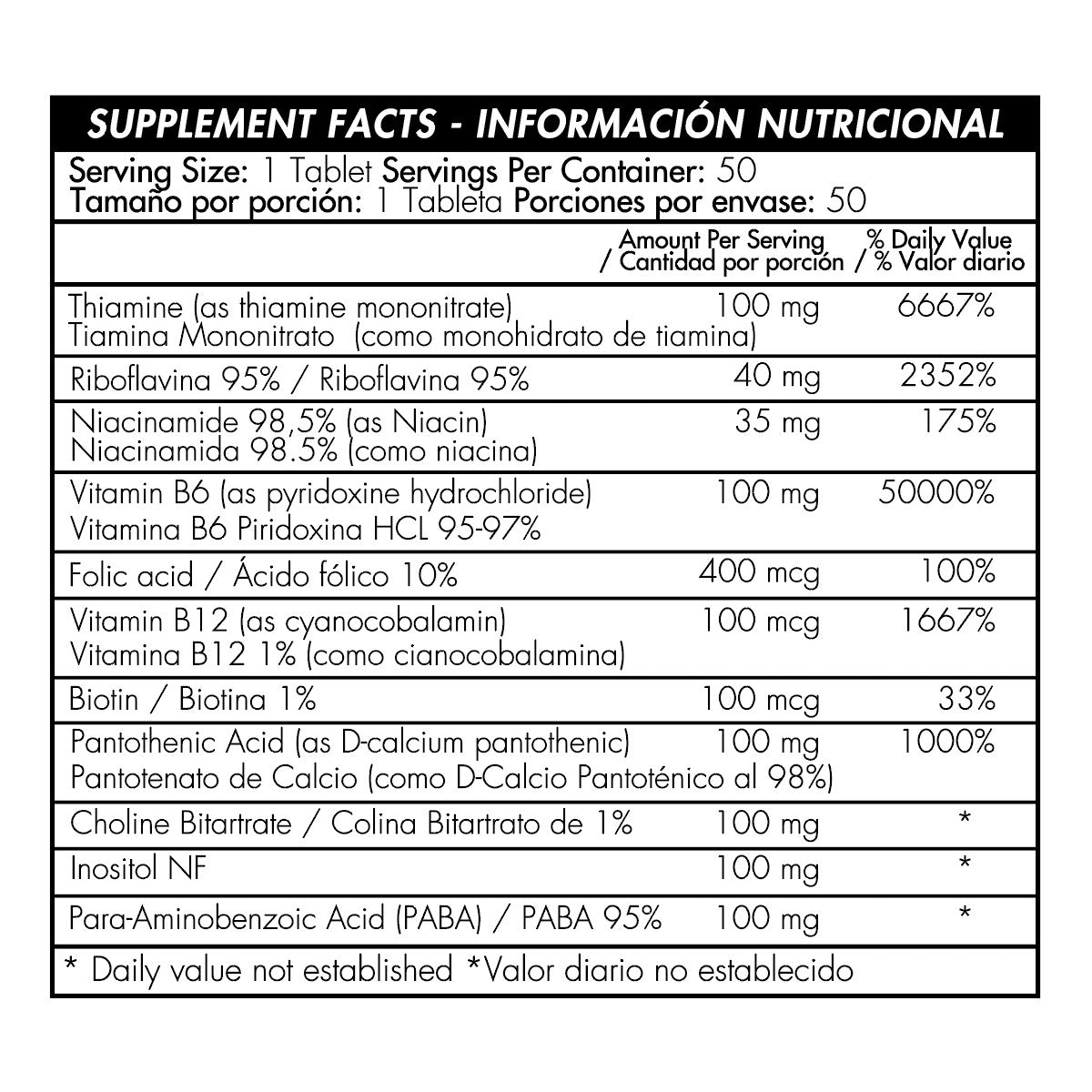 Nuestro B-100 Complex ofrece una fórmula completa que combina las vitaminas B esenciales para proporcionarte un apoyo integral. Desde la B1 hasta la B12, cada cápsula está cargada de nutrientes que promueven una mente clara, una piel radiante y un cuerpo lleno de energía. ¡No dejes que la fatiga te frene, eleva tu rendimiento con B-100 Complex!