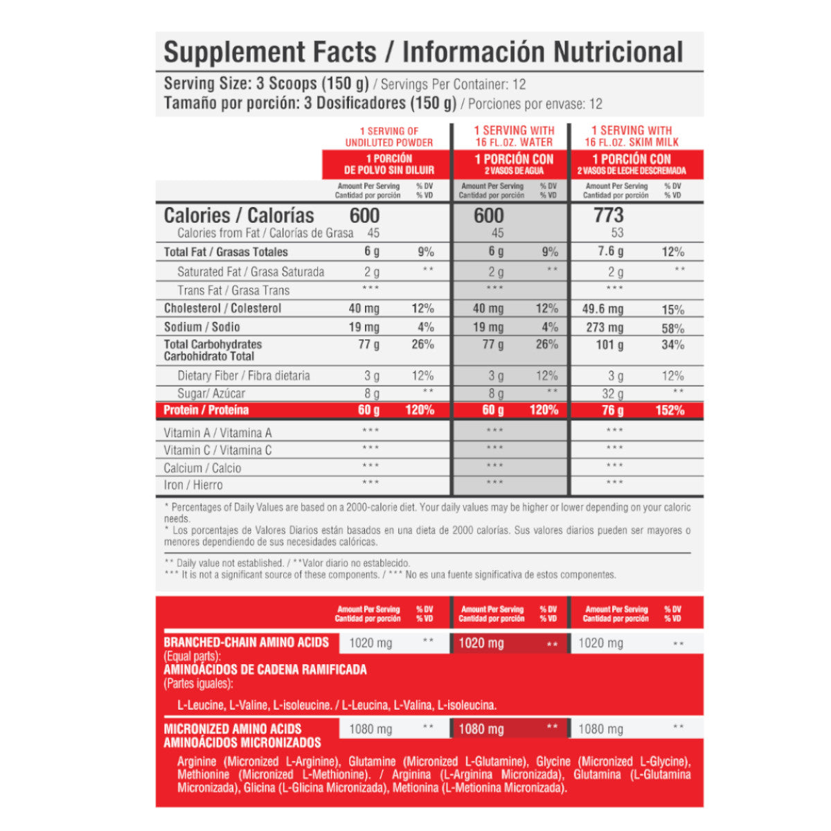 🏋️♂️ Aumenta tu masa muscular con 60 gramos de proteína por porción.
