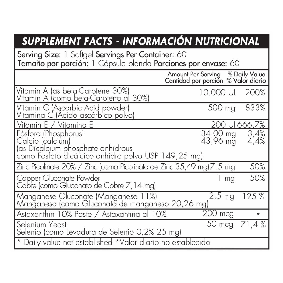 - Fórmula avanzada para una salud antioxidante, ocular y del sistema inmunológico.