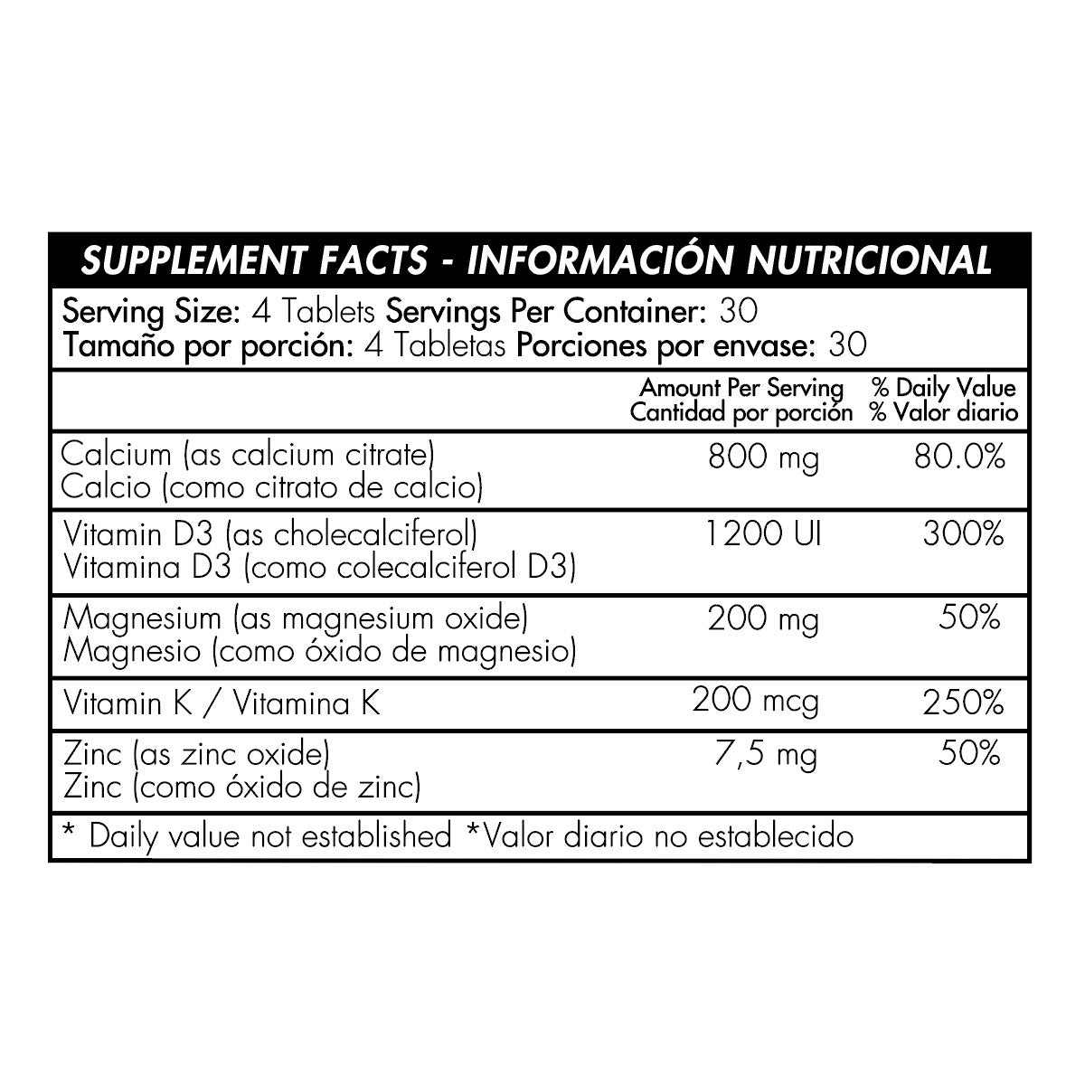 - Fórmula completa con calcio, vitamina D, magnesio, zinc y vitamina K.