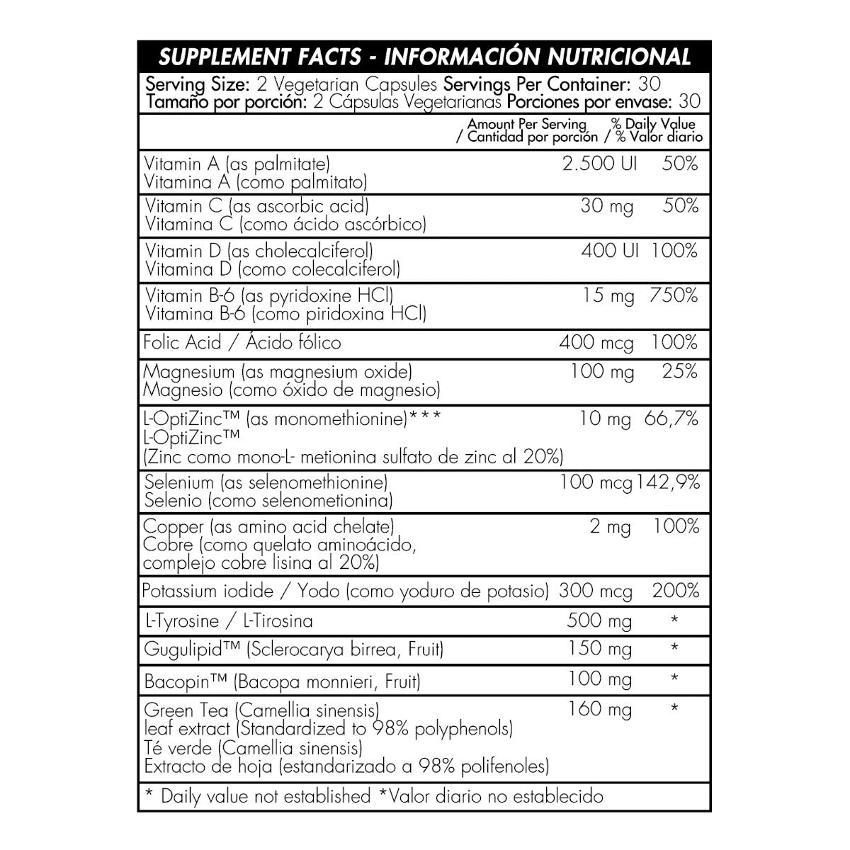 - Equilibrio Hormonal: Ingredientes específicos para apoyar la función saludable de la glándula tiroides.