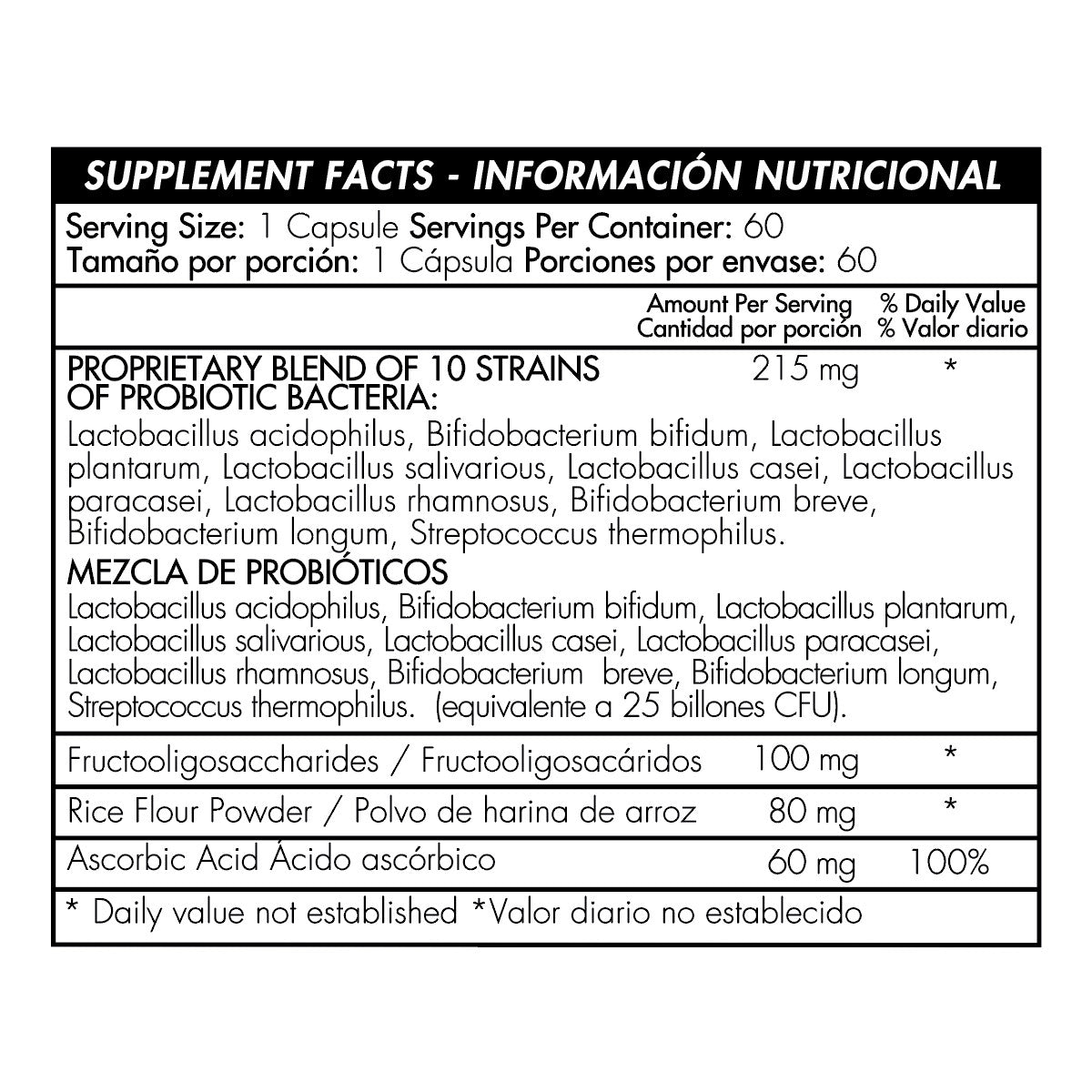 - Ingredientes de Calidad: Contiene una mezcla de probióticos potentes, incluyendo Lactobacillus Acidophilus, Bifidobacterium Bifidum, y más, para una acción efectiva.