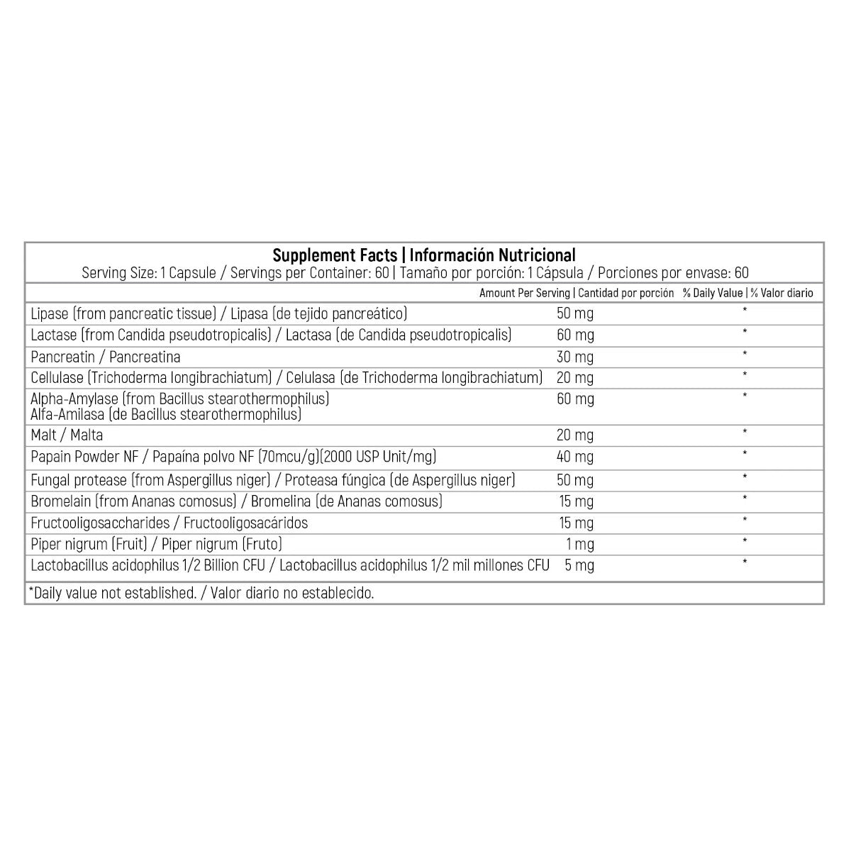 - Ingredientes Naturales: Formulado con una cuidadosa selección de enzimas digestivas y probióticos para una máxima eficacia.