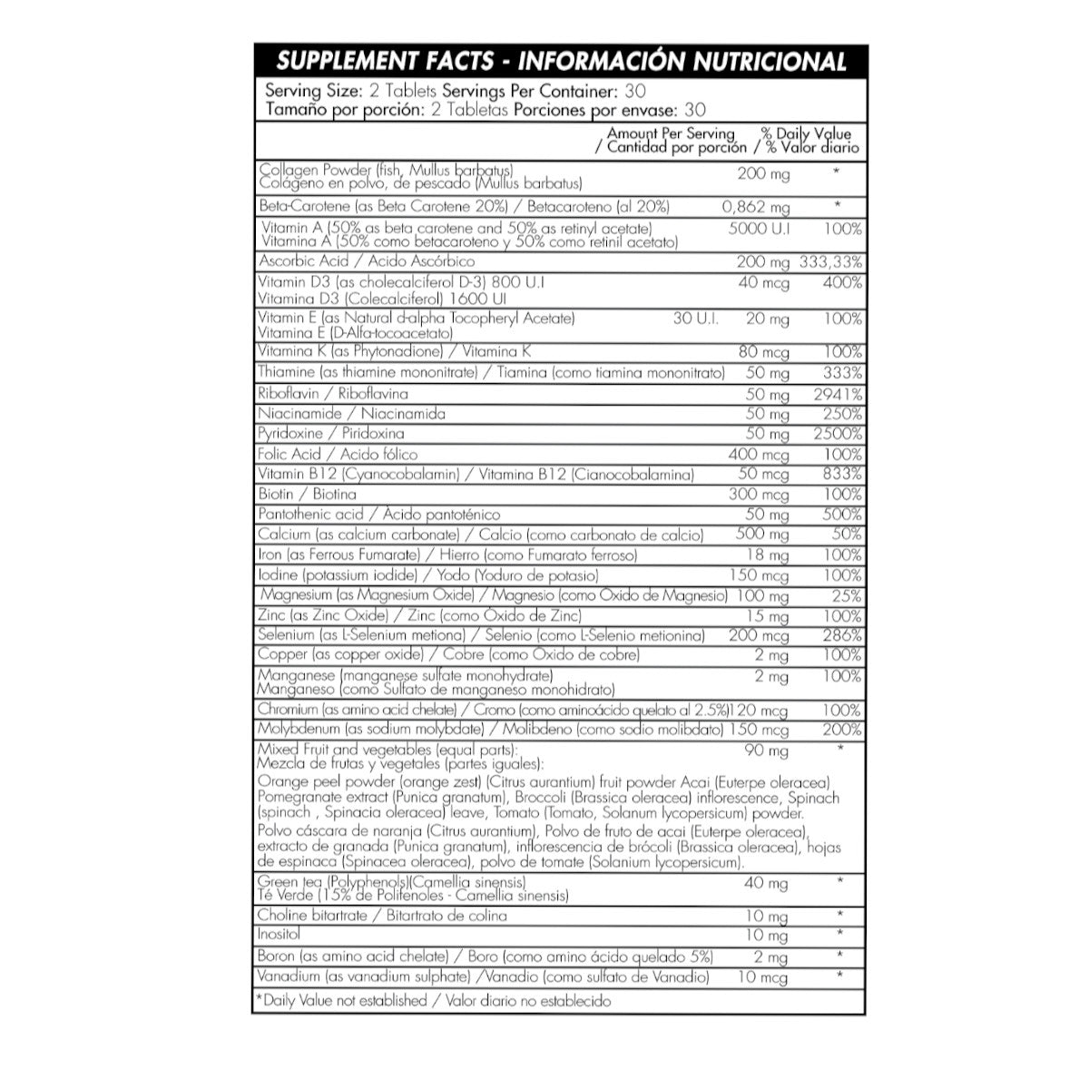 - ✨ Completo espectro de vitaminas y minerales: Nuestra fórmula abarca un amplio rango de nutrientes esenciales, incluyendo vitaminas A, C, D, E, complejo B, hierro, calcio y más, para garantizar que tu cuerpo reciba todo lo que necesita para funcionar óptimamente.