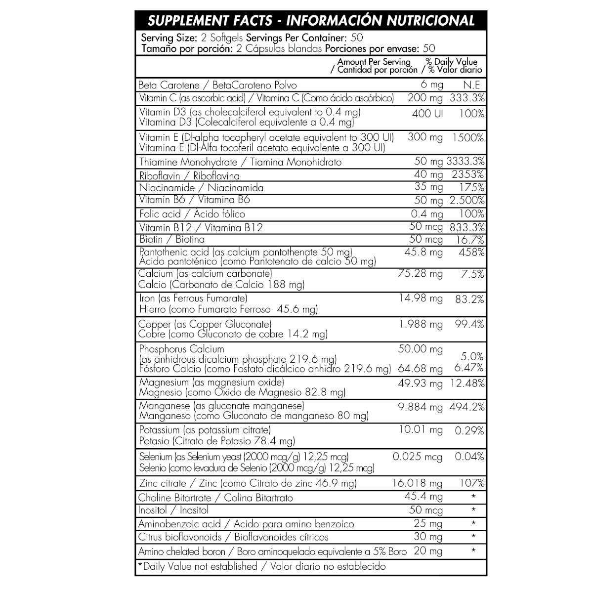 - Fórmula avanzada con una combinación única de vitaminas y minerales.
