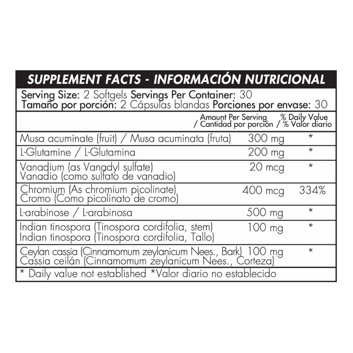 - Ingredientes naturales como Musa acuminata, L-Glutamina, Picolinato de Cromo, y más, respaldados por la ciencia para resultados efectivos y seguros.
