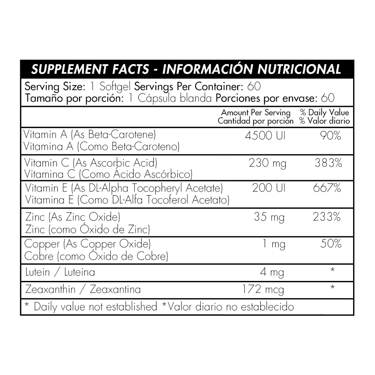 - Fórmula avanzada con Luteína, Zeaxantina y Vitaminas Esenciales