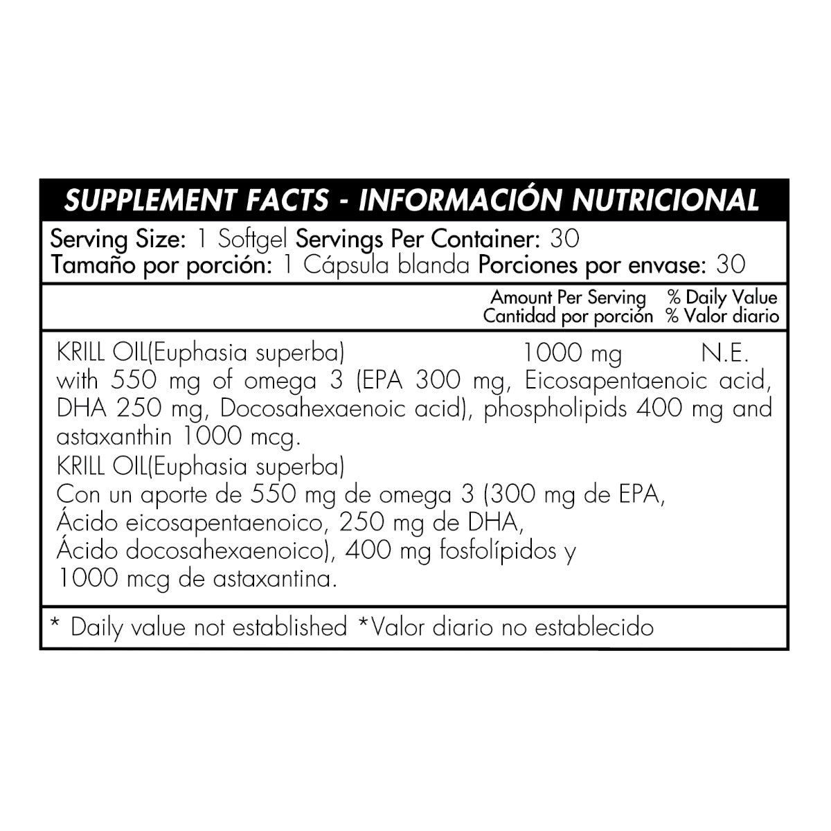 - Cada cápsula contiene 1,000 mg de krill rojo de alta calidad.